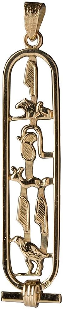 Cartouche jewelry is made best here in egypt by talented artists. Have your name engraved in beautiful hieroglyphic letters just as ancient egyptian royalty would have. We offer personalized egyptian cartouche jewelry including pendants & necklaces & all hand made with your name in hieroglyphs. 4.7 out of 5 stars. Personalised gold cartouche necklace, your name converted into ancient egyptian hieroglyphic language, gold cartouche jewelry. Gold cartouche necklace, your name in egyptian symbols, cartouche pendant, customized cartouche jewelry. Cartouche personalization allows up to five characters (or 6 or 7 characters if the name contains characters like ou or th, which are translated to one symbol in ancient egyptian hieroglyphs); Please remember all orders are custom made in turkey. Special cartouche with i love you in hieroglyphics necklace solid 18k gold made by our skilled egyptian necklace artisans. The custom of writing the pharaoh's name inside the cartouches represented his rule over the universe. We have the perfect thing to complete your everyday look. Choose up to six symbols from an assortment of over twenty. Each cartouche from egypt is hand carved and crafted to order by skilled egyptian cartouche artisans.
