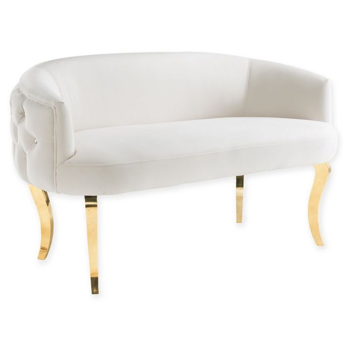 Adina White Velvet Loveseat with Gold Metal Legs by TOV Furniture from sep.yimg.com We did not find results for: Maybe you would like to learn more about one of these? Check spelling or type a new query. White velvet chair with gold legs.